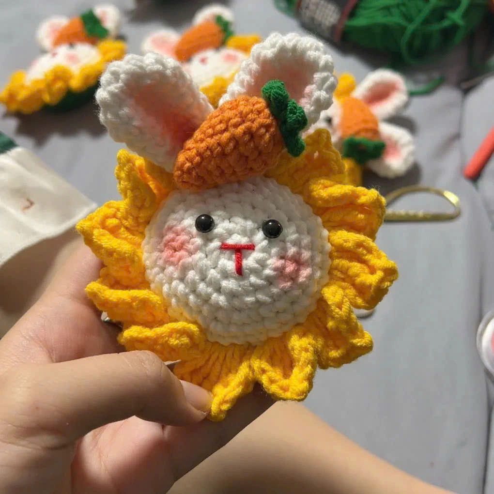 🐇 Thỏ Hướng Dương Đeo Nơ Cà Rốt – Thú Len Handmade Dễ Thương